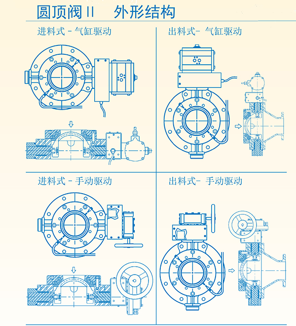 全口徑無阻礙的物料流動是通過獨特的球頂設計來實現的,僅僅轉動90°機殼實現閥門從全閉到全開狀態的切換。這一操作使整個球頂在轉動過程中通過物料得到清理。